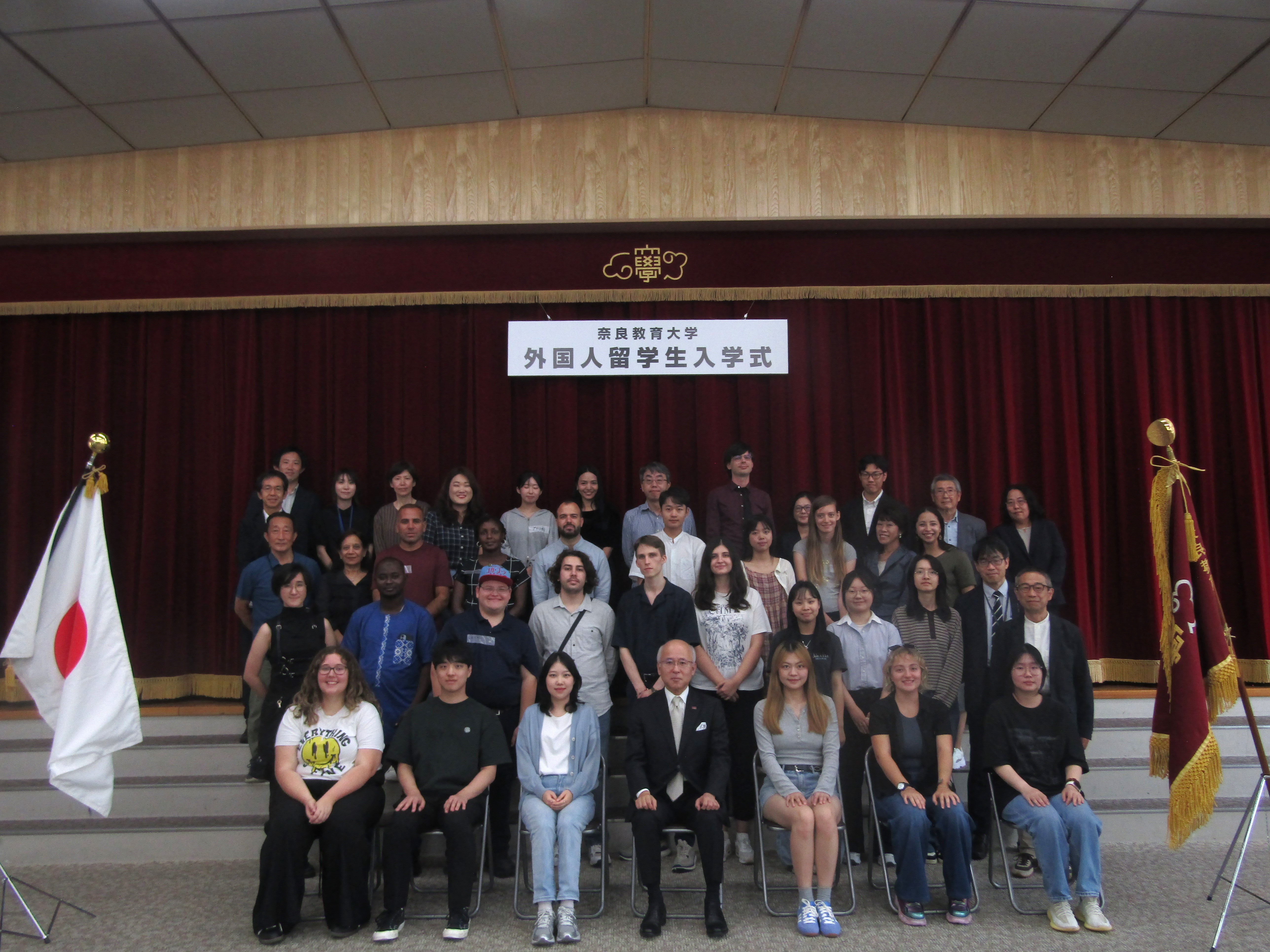 大学間交流協定に基づく交換留学生10名、日本語・日本文化研修留学生6名、教員研修留学生4名、合わせて20名が入学しました。学長からの祝辞、在学生からの歓迎の言葉があり、新入留学生は気持ちを新たに日本での学生生活をスタートさせました。