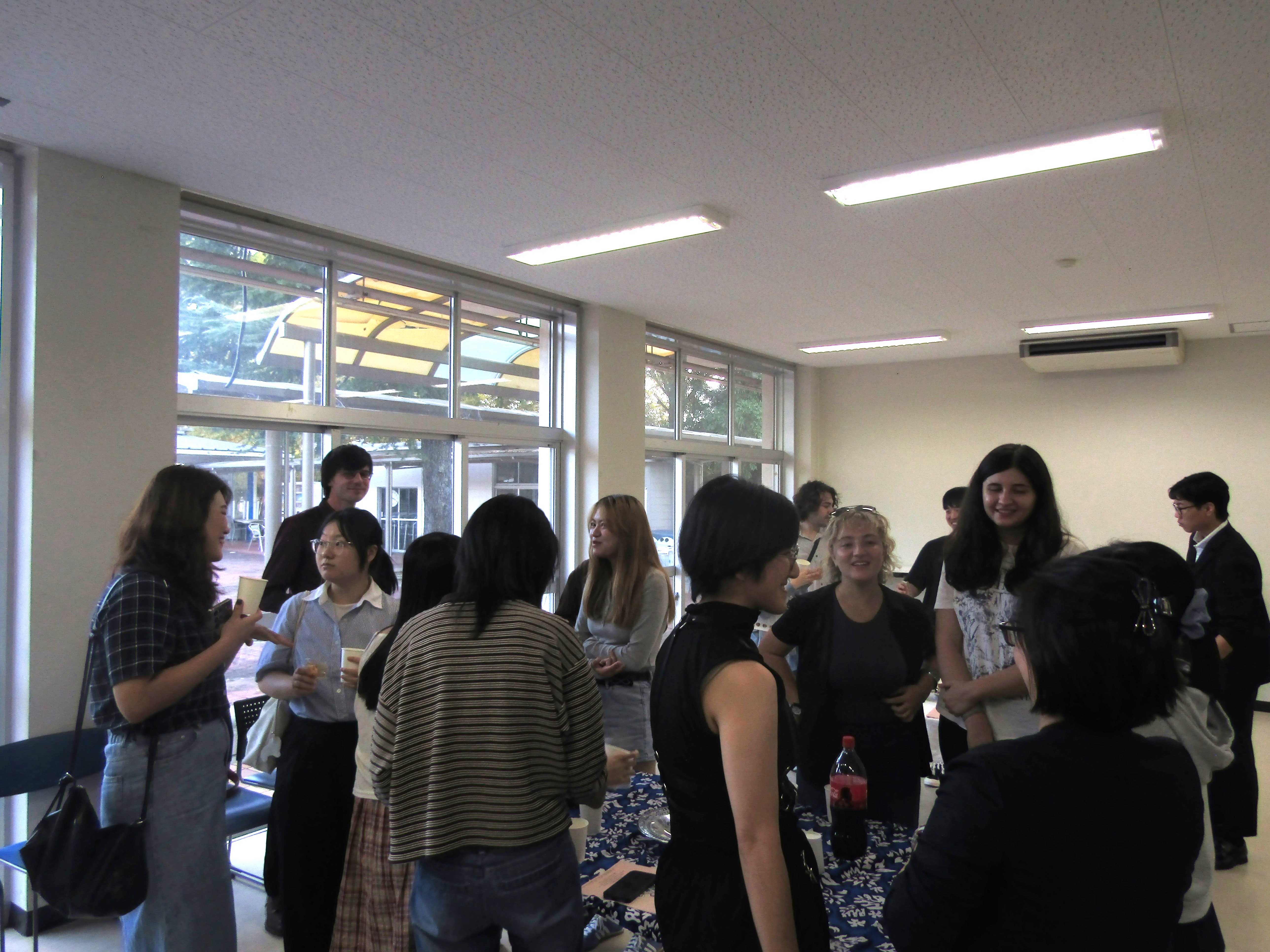 入学式の後は、留学生懇談会を開催しました。懇談会には、在籍する留学生や日本人学生をはじめとする学内関係者と来賓の方々が参加し、留学生や日本人学生が交流を深め、暖かい歓迎の雰囲気に包まれました。