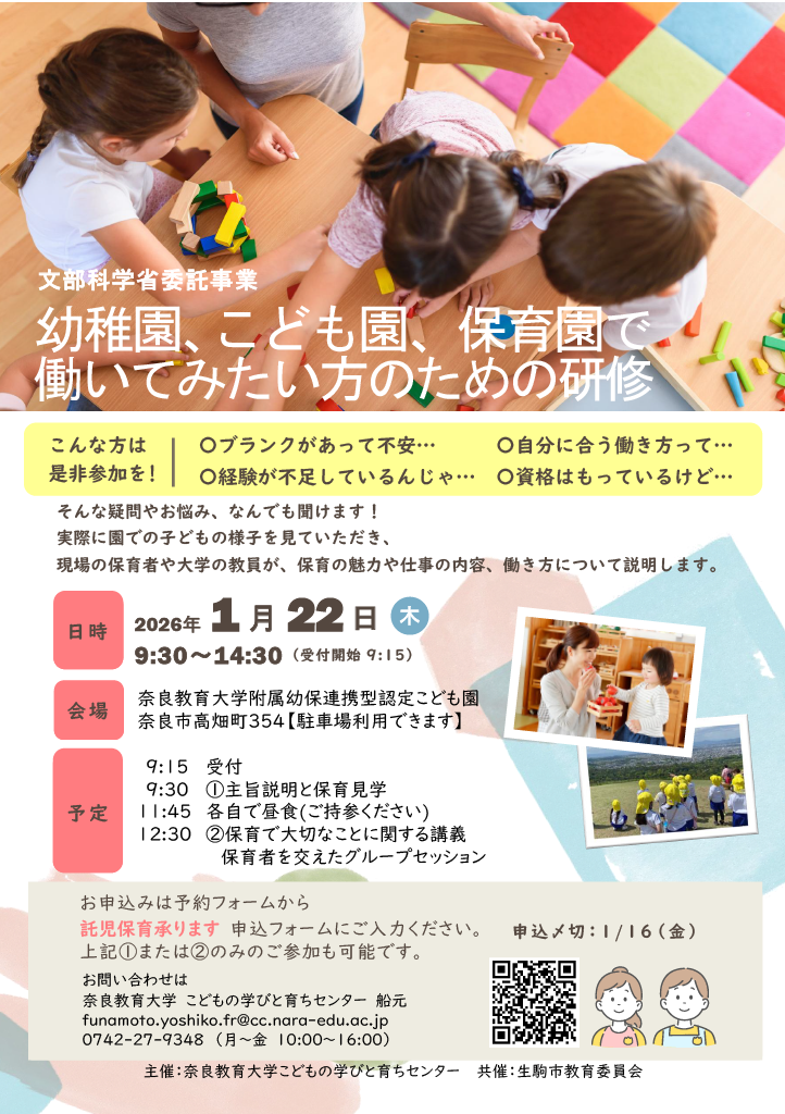 そこで、奈良教育大学では附属こども園を活用し、妊娠期からの継続した保護者支援を行い、その成果を社会に発信していきます。