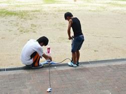 8月7日は、4日の成果を踏まえて実験装置の改良など直前まで準備に万全を尽くしましたが、台風による警報発令のために中止となりました。この日に参加予定の児童・生徒の皆さん、本当に残念でしたがまたの機会に是非、参加してください。