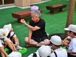 曽爾中学校校舎近辺をフィールドとして、様々な昆虫を採集し、児童と共にそれらを観察した。どのような場所でどのような昆虫が採れたのか、それぞれの昆虫はどの ような顔や口の構造をしているのか、羽根や脚は躰のどの部分から生えているのか、昆虫に共通するのはどんなところかなど、採集した昆虫を虫眼鏡で拡大して観察しながら、昆虫の躰のつくりに関する授業を実施した。