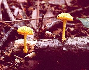 傘の表面が鮮やかな橙色をしていてミカンの皮のようだ。非常に美しいキノコだ。熱帯に広く分布するということだが、その色彩が熱帯を感じさせる。傘の直径は2p前後と小さいが、とにかく目立つので見つけやすい。シイなどの広葉樹の落枝に発生する。