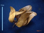 5枚がワンセットになっている葉のようなところ(心皮という)に茶色の丸いものが付いています。これが種子。種子の表面はシワシワです。心皮を一枚を取り、高いところから落とすとくるくると回りながら落ちておもしろいですよ。種子は、冬に心皮ごと風に飛ばされ散布されます。