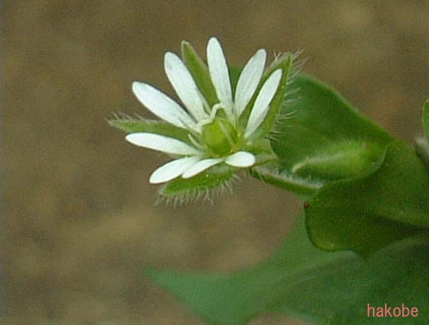 3月〜9月頃にかけて白い小さな花を咲かせ、道端や田畑の周りに普通に見られます。春先からハコベと同じ時期に花を咲かせるオオイヌノフグリと一緒に咲いているのをよく見かけます。