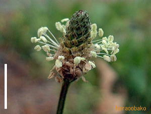 左の写真のように、多くのアップ写真にはスケールがついています。左はしの白い棒がそうです。白のスケールが入っている場合は棒のはしからはしまでで1cmと考えてください。水色の10cmスケールやその他の色や長さの場合は、わかりやすいように長さを記入してあります。 |