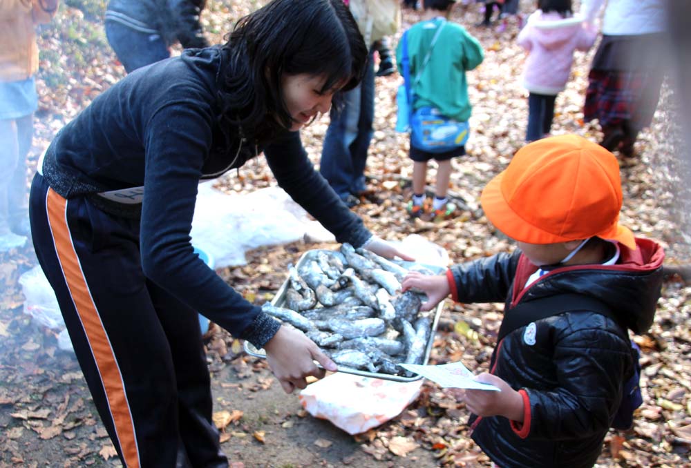 11月29日に、学生が附属幼稚園で焼き芋を作り、園児やその保護者らに振る舞いました。
